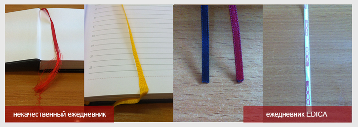 Посмотрите на ляссе (закладку) Вашего ежедневника. Плетение должно быть достаточно плотным, а край запаян. Только это сохранит его внешний вид и предотвратит осыпание даже при длительном использовании.