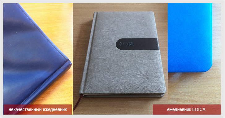 Посмотрите на обложку Вашего ежедневника. Материал не должен скатываться. Ведь При изготовлении обложки должен использоваться качественный картон с поролоном и специальный клей. Стандартной бесплатной опцией для нас является скругление углов ежедневника. Это добавляет эстетики внешнему виду изделия и Вы никогда не поцарапаетесь об угол ежедневника.