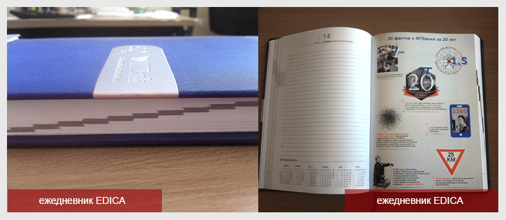 Это полноцветная рекламная вставка в изделие. Ранее мы уже писали о правильно обрезанном блоке ежедневника, так вот вшивка или вклейка должны быть подогнаны и обрезаны точно в размер блока, они не должны выделяться или торчать из блока.